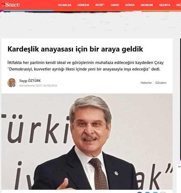 * İYİ Parti İzmir Milletvekili Aytun Çıray, iki yıl önce Sözcü'ye, "Kardeşlik anayasası için bir araya geldik. Bu çerçevede görüşmelerimiz devam etmekte ve nihai noktaya yaklaşmış bulunmaktayız. Müstakbel Cumhurbaşkanımız Meral Akşener de böyle düşünüyor." açıklamasını yaptı. 13 Kasım'da ise, "Anayasalar kapalı kapılar arkasında yapılmaz!" iddiasında bulundu.