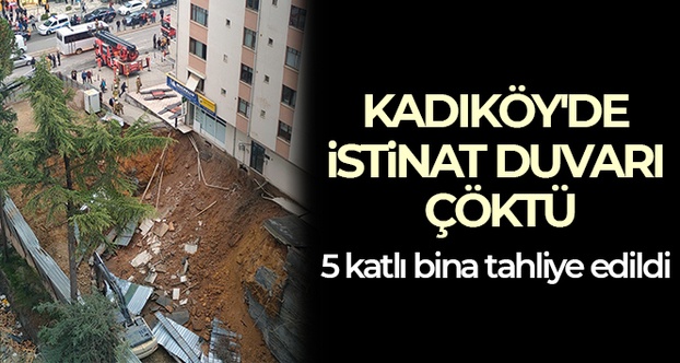 Kadıköy’de bir inşaat sahasında istinat duvarının çökmesi sonucu göçük meydana geldi. İnşaat sahasının yanında bulunan 5 katlı bina tahliye edilirken, alan havadan görüntülendi.