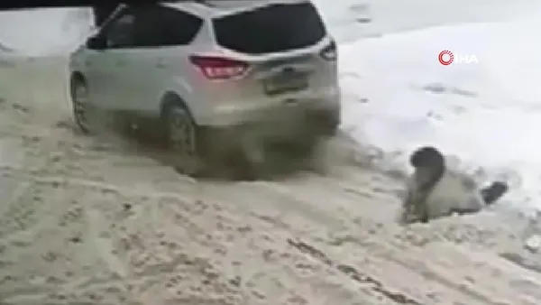 Rusya'ya bağlı Tataristan'ın Zelenodolsk kentinde bir sürücü, aracının arkasında bulunan yaşlı kadını fark etmeyerek geri geri gitmeye başladı. Dikkatsiz sürücü, aracının kar birikintilerine saplandığını düşünerek, çarparak yere düşürdüğü kadının üzerinden defalarca geçti.Güvenlik kamerasına yansıyan görüntüde, yaşlı kadının ayağa kalkmaya çalıştığı görüldü. Dikkatsiz sürücü, en sonunda aracından inmesinin ardından yerde yatan kadını fark etti.