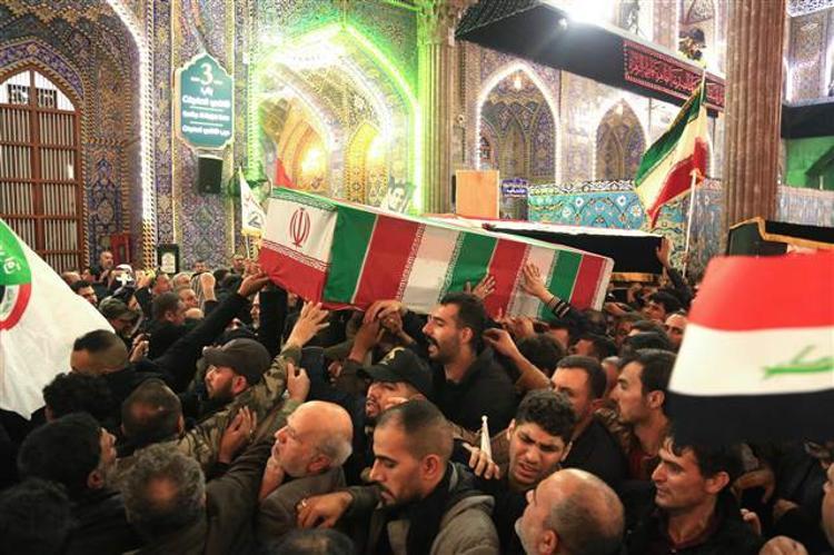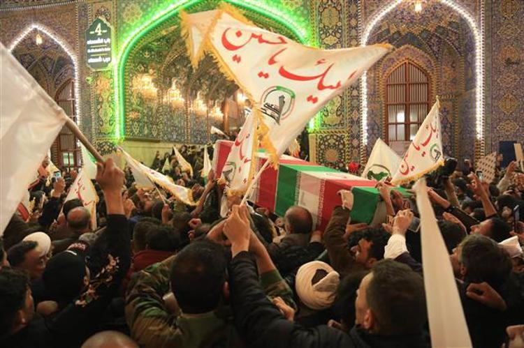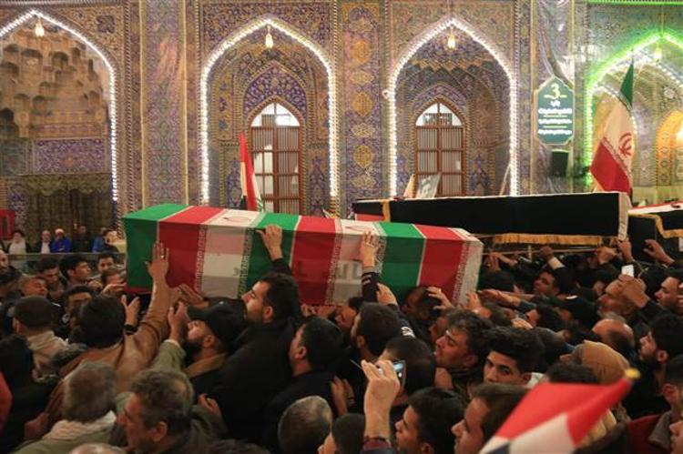 Irak’ın Kerbela şehrinde İran Devrim Muhafızları’na bağlı Kudüs Gücü Komutanı Kasım Süleymani ve Haşdi Şabi Başkan Yardımcısı Ebu Mehdi el-Mühendis için cenaze töreni düzenlendi. Törene yüz binlerce kişi katıldı.