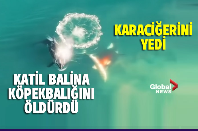 Katil balina büyük beyaz köpekbalığını öldürüp karaciğerini yedi
