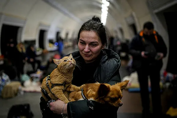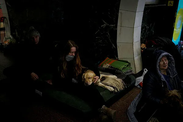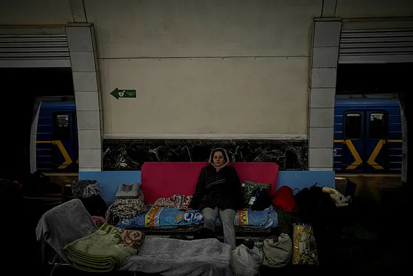 Rus Ordusu'nun kuşattığı Ukrayna'nın başkenti Kiev'in derinliği ile ünlü tarihi metro istasyonları hava bombardımanı endişesi yaşayan siviller için sığınak oldu. Çocukları, evcil hayvanlarıyla metroya sığınan Kievliler, "Umutluyuz, ordumuza güveniyoruz.