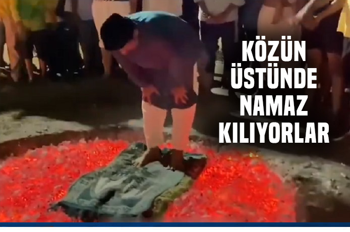 Görüntülerde, cemaatten birinin, kızgın kömürlerin üzerine serili bir örtünün üzerinde namaz kılmak için ilerlediği, iki rekat namaz kıldıktan sonra, etrafında toplanan insanların arasında oradan ayrıldığı görülüyor.