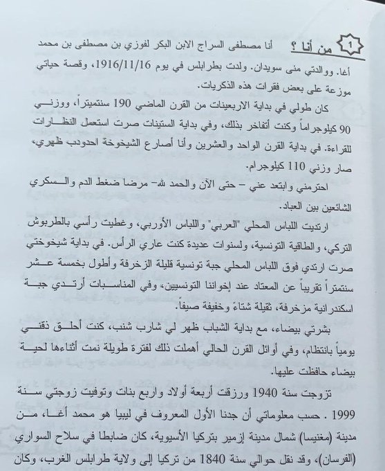 Fayiz es-Serrac'ın babası Mustafa es-Serrac'a ait hatırat. Sayfanın başında "Ben kimim?" sorusu yer alıyor.