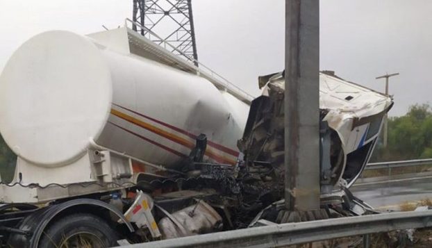 Hatay'ın Payas ilçesinde kontrolden çıkan dolu LPG tankeri gişeler yolundaki levha direğine çarptı. Facianın eşiğinden dönülen kazada sürücü hafif yaralandı.