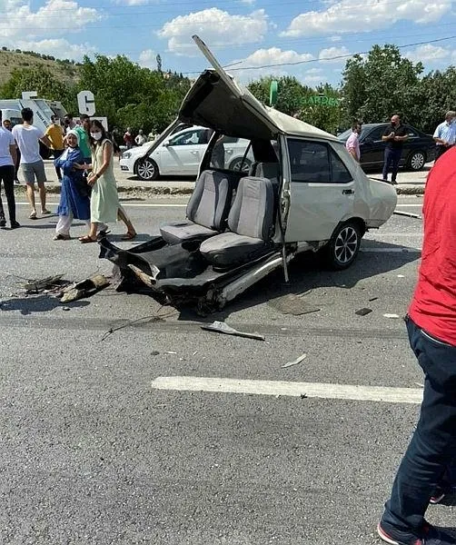 O sırada seyir halinde olan önündeki araca vurduktan sonra karşı şeride geçen araç, ters istikametten gelen araçlara da vurduktan sonra ortadan ikiye bölündü.
