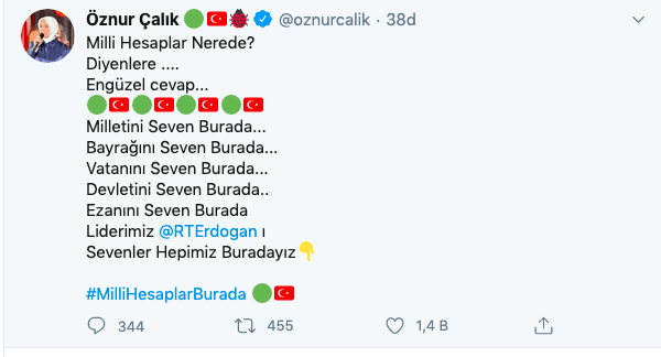 "Devletimizin ve hukukun yanında duruyoruz. Hakikatı kuşanıp, hakikatı konuşup "Sosyal Medya Etik Kuralları"nı kabul ediyor ve takipleşiyoruz. Böylece sosyal medyayı milli kültürümüzün ve ahlakımızın vakur duruşu ile kuşatıyoruz.