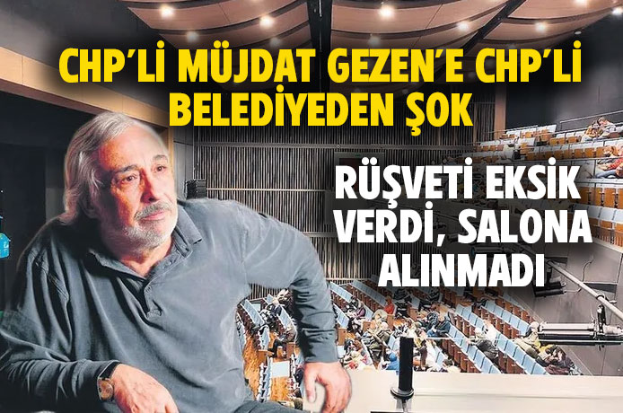 CHP'li belediyenin yetkilileri tarafından usta sanatçı Müjdat Gezen'den sahneye çıkabilmesi için 2 milyon 500 bin lira rüşvet istendiği, Gezen'in ise istenen paranın 600 bin lirasını vermemesi üzerine ikinci kez gittiği kültür merkezine alınmadığı öne sürüldü. Gezen'in yaşanan olayı CHP Genel Başkanı Özgür Özel'e ilettiği kaydedildi.