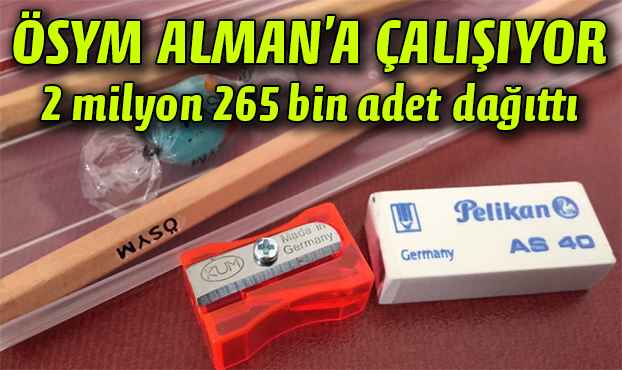 ÖSYM, 2 milyon 265 bin 902 adayın katıldığı YGS sınavında dağıtılan silgi ve kalemtraşları Almanya'dan ithal etti.