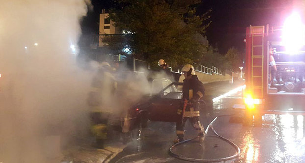 Otomobil yangını itfaiyeyi alarma geçirdi