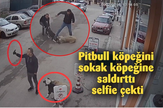 Bursa'da bir kişi ‘yasaklı ırk' sınıfında bulunan pitbull cinsi köpeğini tasmasız ve ağızlıksız dışarıya çıkardı. Sokak köpeğinin yanına gelen pitbull, köpeğe saldırmaya başladı. Pitbullun sahibi, saldırıyı çekmekle yetinmeyip, bir de selfie çekti. Ayrıca saldıran sanki sokak köpeğiymiş gibi zavallı hayvanı tekmeleyerek ayırmaya çalıştı. Sokak köpeğinin yardımına çevredeki esnaf koşarken, esnafın bulduğu sopa yardımıyla pitbulldan kurtarılan köpeğin akıbeti bilinmiyor.