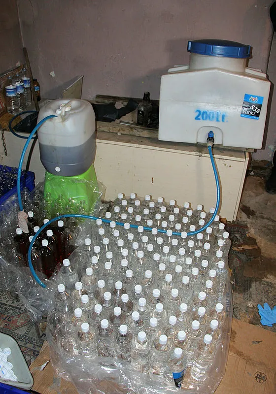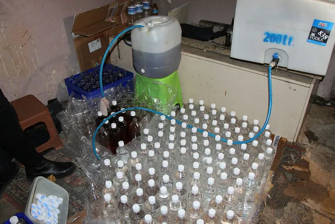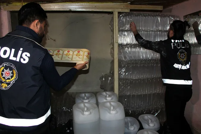 İstanbul Fatih'te bir polis memurunun dikkati, sahte içki imalathanesinin ortaya çıkarılmasını sağladı. Yoğun alkol kokusu üzerine başlatılan operasyonda, imalathanede bulunan Suriye uyruklu Samir F. gözaltına alındı. Yapılan aramalarda, 412 şişe satışa hazır sahte içki, 500 litre alkol, 700 boş şişe ile çok miktarda üretim malzemesi ele geçirildi. İncelemelerde polis ekipleri bir çöp kutusunun içerisinde siyah poşetlere koyulmuş satışa hazır sevkiyat bekleyen içki şişeleri bulundu.