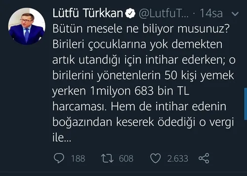 Tepkiler arasında Türkkan'ın TV'de açlık edebiyatı yaptığı, mecliste levreğin pahalı olmasına tepki gösterdiği ve fakirlikten dem vurduğu twitleri de hatırlatıldı. İşte o twitlerden biri...