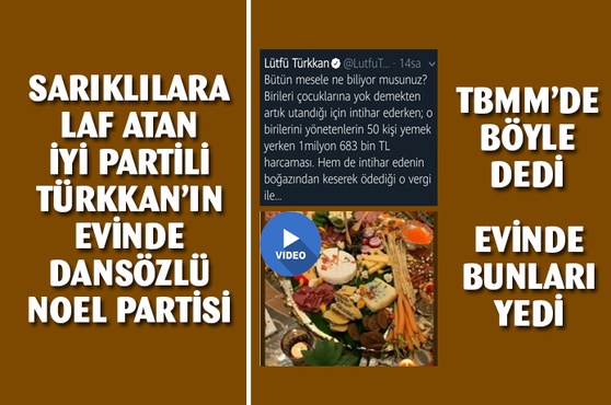 Geçtiğimiz günlerde TBMM'de bulunan şehit kaymakam Muhammed Fatih Satfitürk'ün babasına "Bu sarıklı cübbeli" şeklinde ayrımcı ifadelerle bahsederek mecliste olmaması gerektiğinden söz eden İYİ Partili Lütfü Türkkan'ın kızı Dilara Tükkan'ın evinde düzenlenen NOEL partisi sosyal medyayı adeta salladı. Sert eleştiriler alan partide lüks, israf ve şatafatın yanı sıra kadın kılığındaki erkeklere dans ettirilmesi de sosyal medyada konuşuldu. İşte o partiden ayrıntılar ve Türkkan'a gelen tepkiler