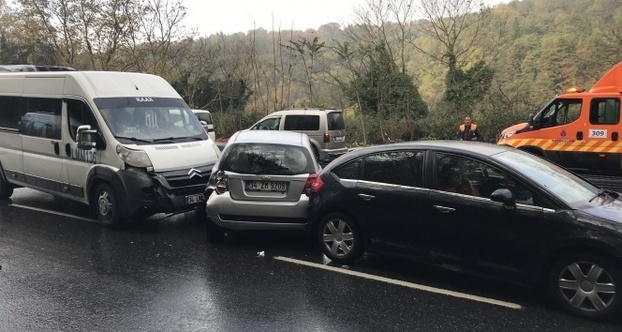 Kaza, saat 09.00 sıralarında Sarıyer Hacıosman Bayırı'nda meydana geldi. Edinilen bilgiye göre, sabah saatlerinde bir ambulans henüz bilinmeyen bir nedenle yol üzerinde beklemeye başladı. Ambulansı son anda gören bir sürücü aniden frene basarak direksiyonu sola kırdı. Sürücünün bu manevrasının ardından arkadan gelen 7 aracın da yavaşlaması sonucu zincirleme kaza meydana geldi. Ortalığın savaş alanına döndüğü kaza sonucu bir sürücü kaşından hafif şekilde yaralandı. Sürücülerin ihbarı üzerine olay yerine sağlık ve polis ekibi sevk edildi. Olay yerine gelen sağlık ekipleri yaralı sürücüye ayakta müdahale ederek taburcu etti. Polis ekipleri ise kazayla ilgili inceleme yaparak tutanak tuttu. Kazaya karışan sürücülerin şaşkınlık yaşadığı olayda bazı araçlar kullanılamaz hale gelirken, bazılarının da hava yastıkları patladı.