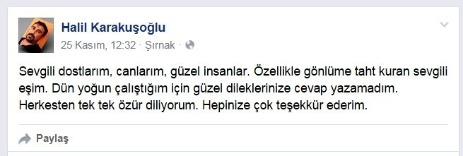 Şehit Uzman Çavuş Karakuşoğlu, 25 Kasım tarihinde kendisine doğum günü mesajı atan yakınlarına sosyal medya hesabından yazdığı mesajda şunları ifade etti: "Sevgili dostlarım, canlarım, güzel insanlar. Özellikle gönlüme taht kuran sevgili eşim. Dün yoğun çalıştığım için güzel dileklerinize cevap yazamadım. Herkesten tek tek özür diliyorum. Hepinize çok teşekkür ederim."