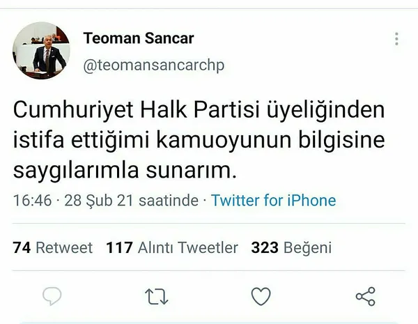 Kaset şantajıyla karşı karşıya kalan ve istifaya zorlanan CHP Denizli Milletvekili Teoman Sancar, partisinin kendisine sahip çıkmadığını, kendisine söz hakkı bile tanımadıklarını belirterek yaşadıklarını anlattı: "Pandemi nedeniyle mekanlar kapalıydı. Bir kaç arkadaşımla birlikte bir ortamda alkol aldık.Daha önceden tanıştığım ailecek de görüştüğümüz bir kişi, çalıştığı kurumda çok baskı gördüğünü görüşmek istediğini söyledi. Mekanlar kapalı olduğu için evine gittim. Kapıda biraz görüştük. Konu uzayınca içeriye geçtim. Saatin geç olması nedeniyle orada uyuya kalmışım. Aradan bir hafta geçtikten sonra bu kişi beni aradı.