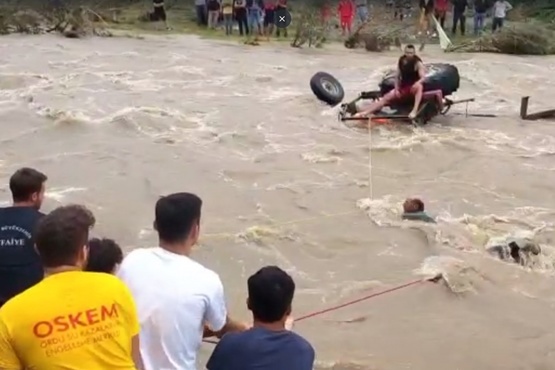 Perşembe ilçesinin Efirli Mahallesi'nde traktörün kirlenen lastiklerini temizlemek için dereye giren Adem Arslan, sağanak nedeniyle debisi yükselerek şiddetli akan derede akıntıya kapıldı. Bu sırada traktör sürüklenerek devrildi. Derenin artasındaki tümseğe takılan traktörün üzerine çıkan Arslan kurtarılmayı bekledi. Çevredekilerin haber vermesi üzerine bölgeye itfaiye ve sağlık ekipleri sevk edildi. Ekipler traktör üzerinde mahsur kalan sürücüyü halat yardımıyla çekerek kıyıya çıkardı. Sağlık durumu iyi olan sürücü, kontrol amaçlı ambulansa alındı.