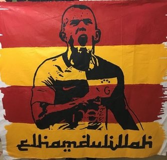 Cezayirli oyuncunun gol sevincinin resmedildiği ve üzerinde "Elhamdülillah" yazan sarı-kırmızılı renklerdeki pankart, bugün oynanacak Fenerbahçe derbide sergilenecek.
