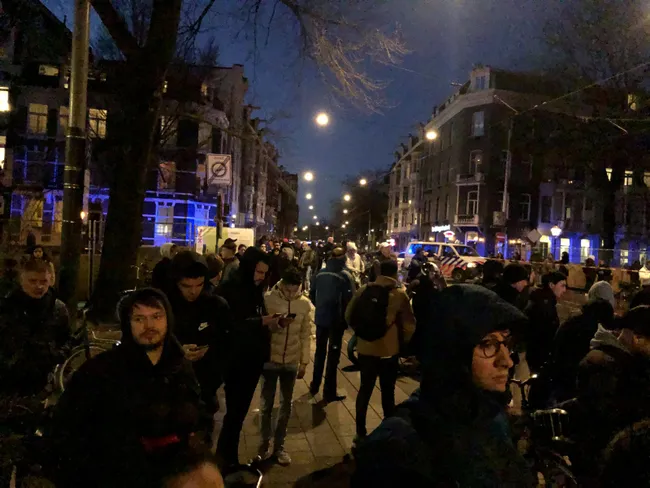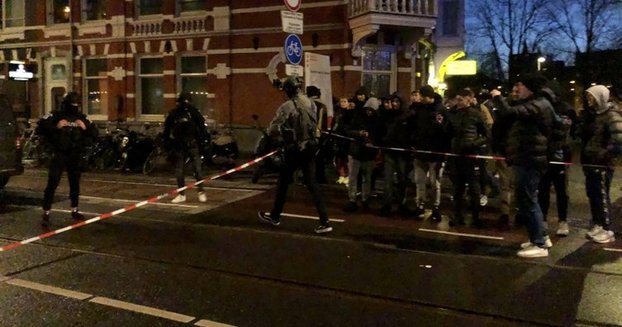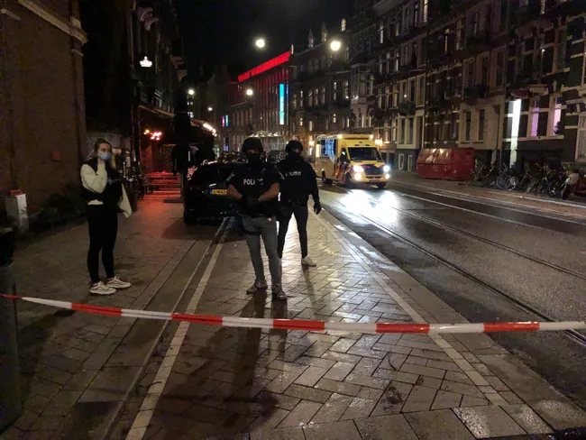 Olay yerine çok sayıda polis ekibi sev edilirken, Leidseplein'in büyük bir kısmı güvenlik kordonu altına alındı.