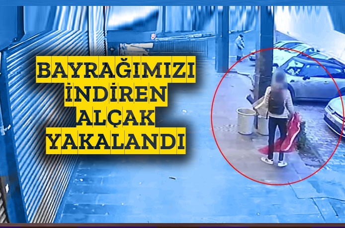 İstanbul Beylikdüzü'nde'nde iş yeri önünde asılı olan Türk Bayrağı'nı indiren şüpheli, o anları cep telefonu kamerasıyla da kaydetti. İş yeri sahibinin ihbarıyla güvenlik kameralarını inceleyen polis ekipleri şüpheli F.K.'yi yakaladı.
