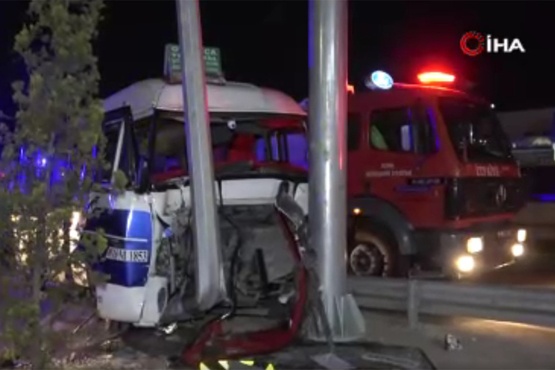 Yolcu minibüsü yön levhasına çarptı: 1'i ağır 12 yaralı