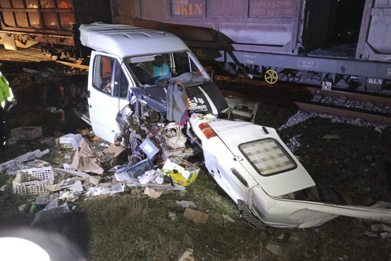Yük treni kamyonetİ ikiye böldü