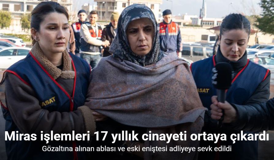 Manisa'da miras işlemleri için yakınları tarafından kayıp başvurusu yapılan kadının 17 yıl önce öldürüldüğü ortaya çıktı. Olayla ilgili öldürülen Ebru Koyuncu'nun ablası Fatma Köse ve eski eniştesi Ufuk Köse gözaltına alınarak adliyeye sevk edildi.