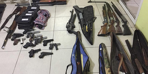Jandarma Özel Harekat Tabur Komutanlığı ekiplerin de katıldığı operasyonda 28 tabanca,15 av tüfeği, bin 87 tabanca mermisi, bin 227 av tüfeği mermisi, 2 el telsizi ile susturucu ve muhtelif tabanca parçaları ele geçirildi.