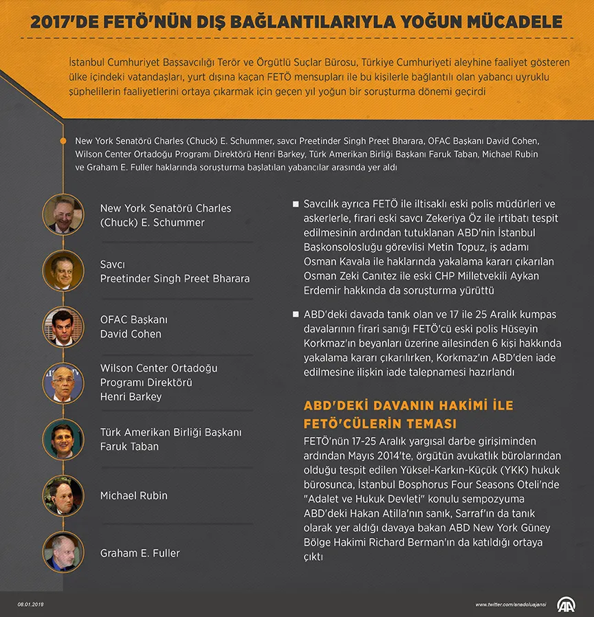 İstanbul Cumhuriyet Başsavcılığı, FETÖ ile iltisakları bulunan veya dış bağlantılarıyla bu terör örgütünü destekleyen bazı Türk vatandaşları ile başta ABD'li olmak üzere yabancılara yönelik soruşturmalarla yoğun mesai harcadı.