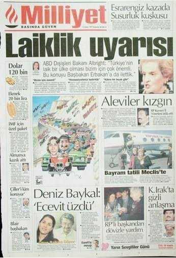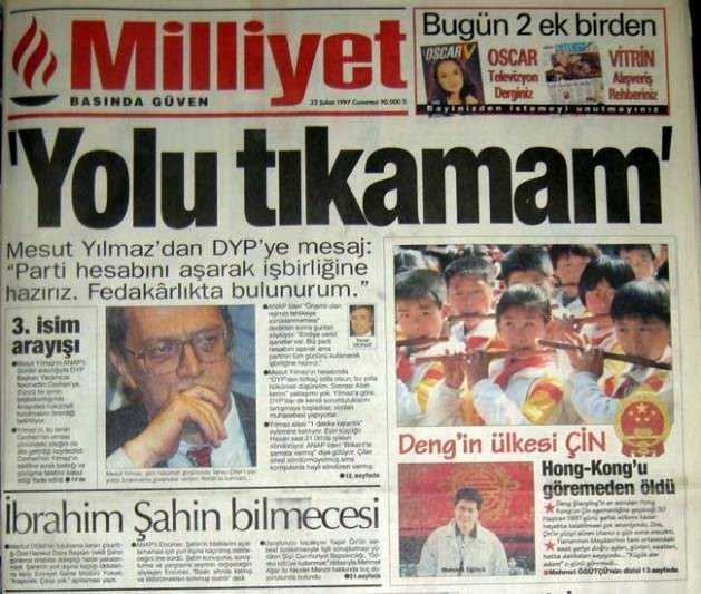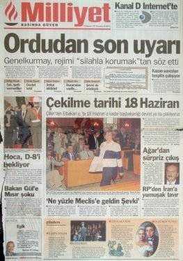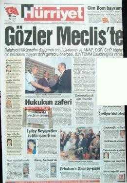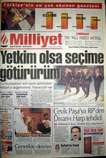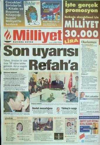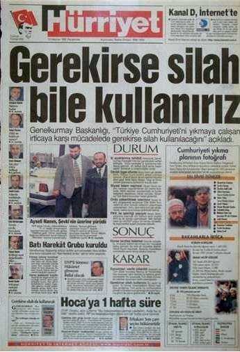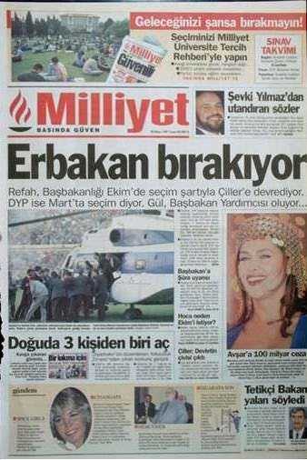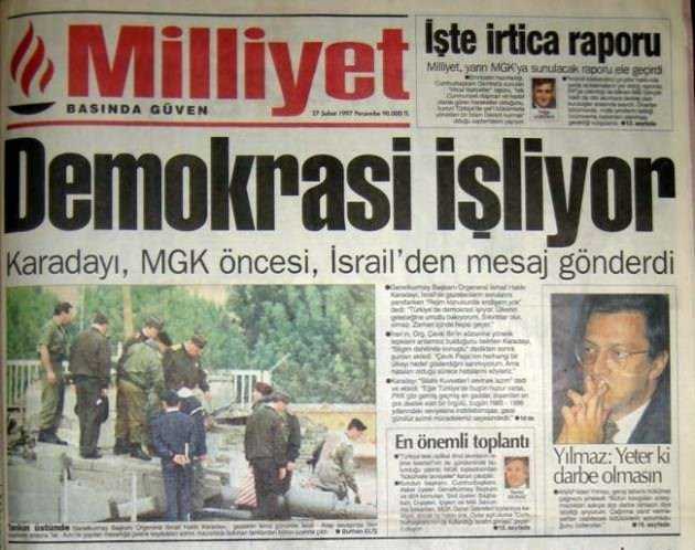 28 Haziran 1996 tarihinde kurulan Refahyol Hükümeti daha icraata başlamadan, Hürriyet’in “70 yıllık imajımız güme gidiyor” şeklindeki “savaş” startından itibaren (14 Ağustos 1996) manşetleri takip ettiğinizde, generallerle paslaşarak ülkeyi nasıl; adım adım darbeye götürdüklerini açıkça görürsünüz." dedi.