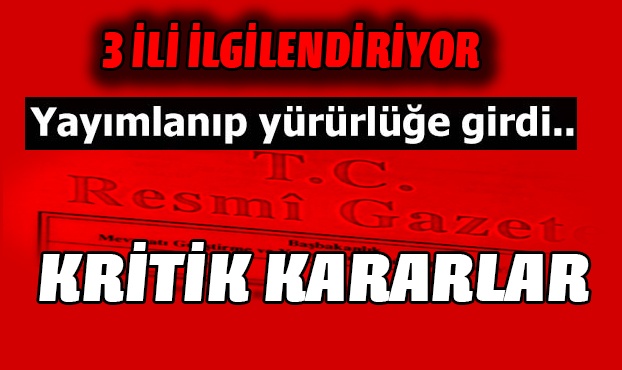 3 kenti ilgilendiriyor... Resmi Gazete'de yayımlandı