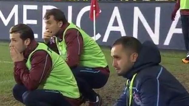 Malatyaspor'un 5. golünün ardından saha kenarında gözyaşlarını tutamayan Trabzonspor'un kondisyoneri Gökhan Kandemir dikkatlerden kaçmadı.