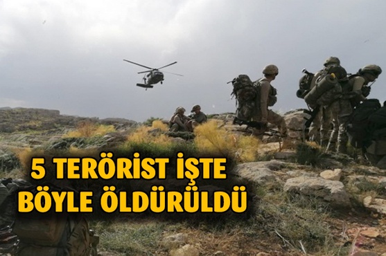 5 PKK`lı terörist silahlarıyla birlikte ölü ele geçirildi.
