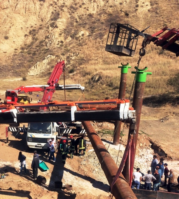 Edinilen bilgiye göre, Alaşehir ilçesi Alhan Mahallesi bölgesinde saat 14.00 sularında jeotermal sıcak su boruları döşeyen operatör Osman Budak (22), 63 KT 905 plakalı vinçle 20 metre uzunluğunda, 5 ton ağırlığında olan sıcak su borusunu iskeleye yerleştirmek üzere taşımaya başladı.