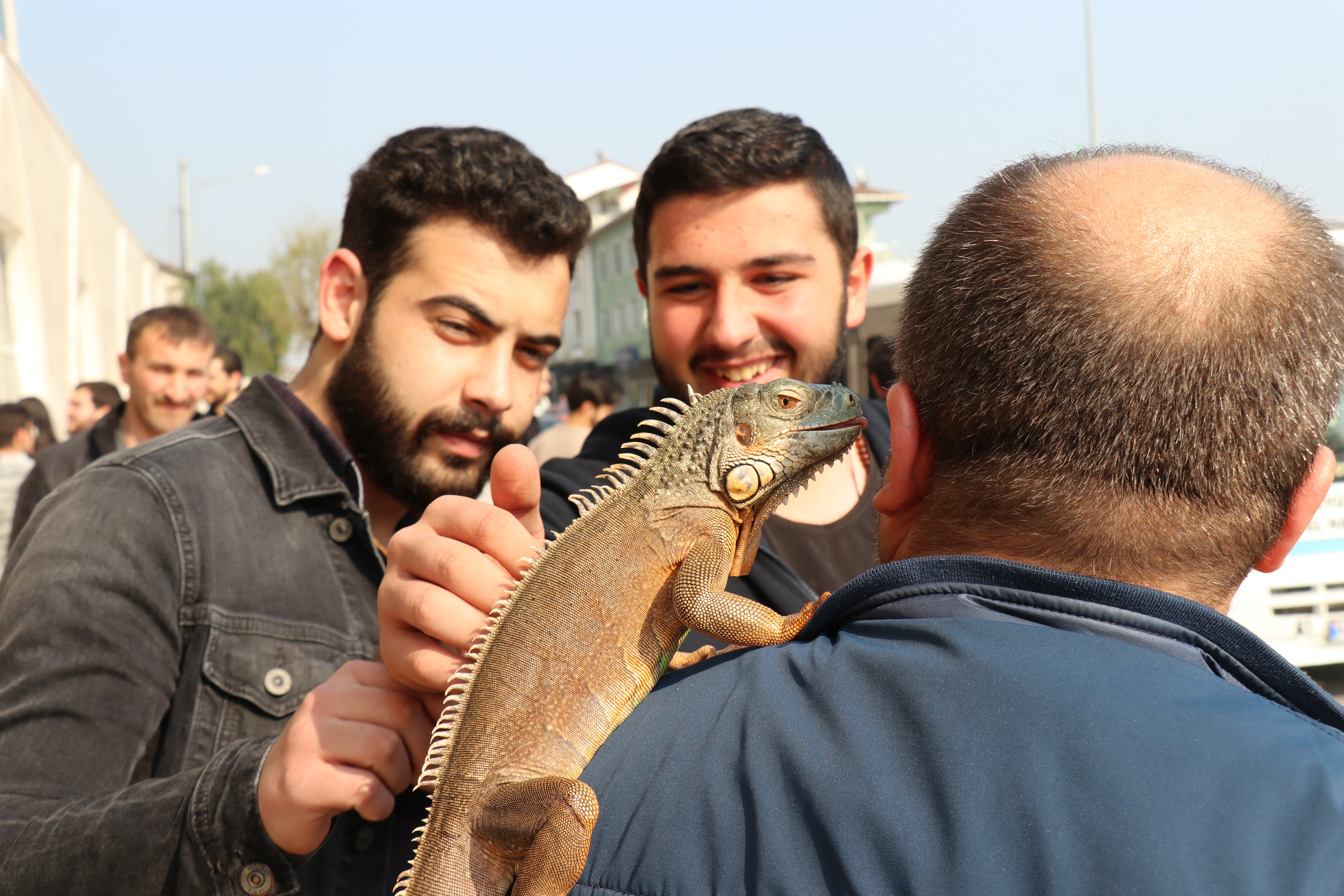 İguanayı gören çevresindeki insanların büyük şaşkınlık yaşadığını anlatan Sarıaslan, ilk defa iguana gören insanlarla ilgili anılarının olduğunu kaydederek, “Bazen korkanlar oluyor, çığlık atıyorlar. Kimisi sevebilir miyim diyor, fotoğraf çekilmek isteyen, ‘Isırır mı, zıplar mı' diye sorular soran oluyor. Geçtiğimiz günlerde bir kafeteryaya gittim. Kedisi olan bir kızı iguana için kedi yediğini söyleyerek korkutmuşlar. O da yanıma gelerek hayıflandı. Ben de nedenini sorunca kendisi bana iguanaların kedi yediğini söyledi. Böyle değişik olaylarla karşılaşabiliyoruz. Ama kendisi uysal bir hayvan. İç içe olmadığımız için bu tür hayvanların yapısını bilemiyoruz tabii genel olarak” diye konuştu.