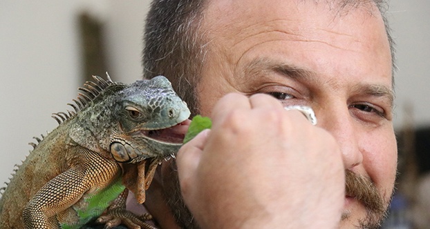 Kocaeli’de yaşayan Yılmaz Sarıaslan, 5 yıldır yanından ayırmadığı iguanasını elleri ile besliyor. Sarıaslan’ı sokakta omuzundaki iguanayla gören vatandaşlar ise şaşkınlıklarını gizleyemiyor.