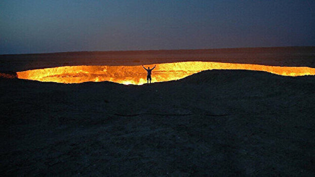 60 metre genişliğe ve 20 metre derinliğe sahip krater, içinden çıkan doğal gaz nedeniyle yaklaşık 50 yıldır yanmaya devam ediyor.