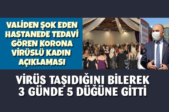 Kayseri'de koronavirüs denetimine katılan Vali Şehmus Günaydın, hastanede koronavirüs tedavisi gören 80 yaşındaki kadının 72 saatte 5 düğüne gittiğini söyledi.