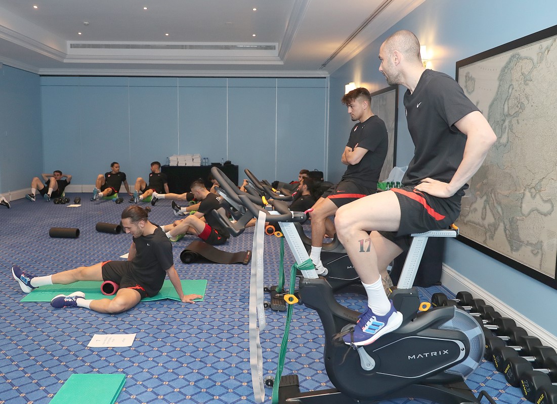 A Milli Futbol Takımı, 2022 FIFA Dünya Kupası Avrupa Elemeleri play-off yarı final maçında karşılaşacağı Portekiz maçı hazırlıklarını bugün salonda yaptığı antrenmanla devam ettirdi.