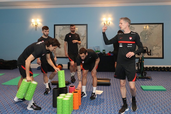 A Millî Takım, 2022 FIFA Dünya Kupası Avrupa Elemeleri play-off yarı finalinde Portekiz ile oynayacağı maçın hazırlıklarını, bu sabah kamp otelinde basına kapalı olarak yaptığı salon çalışmasıyla sürdürdü. İki gruba ayrılan ay-yıldızlılar, dönüşümlü olarak video analiz gösterimini izledi ve fiziksel performans antrenörü Axel Busenkell yönetiminde yaklaşık bir saat süreyle mobilizasyon ve stabilizasyon yaptı.