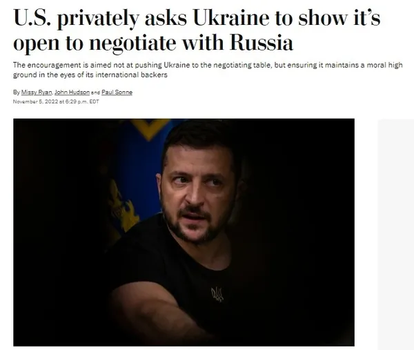 Ülke basınında yer alan bir diğer iddia ise ABD'nin Ukrayna'ya, Rusya ile görüşmelerde bulunması için baskı uyguladığı oldu. Washington Post'un haberine göre üst düzey ABD'li yetkililer, artan nükleer savaş endişeleri nedeniyle Ukrayna'yı müzakere masasına oturtmayı amaçlıyor.