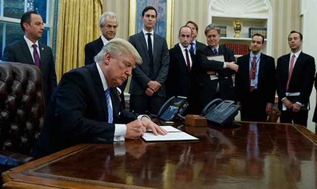 Beyaz Saray'da düzenlenen basın toplantısında, Trump, seçim kampanyasında vadettiği üzere, Asya-Pasifik bölgesinde toplam 12 ülkenin dahil olduğu TPP anlaşmasından ABD'nin çekilmesi için bir başkanlık emri imzaladı.