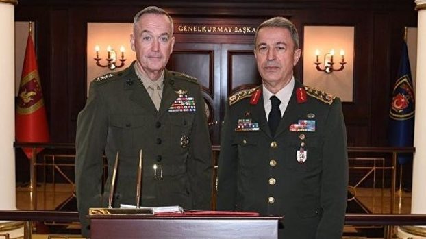 ABD Genelkurmay Başkanı Orgeneral Joseph Dunford'ın, Genelkurmay Başkanı Orgeneral Hulusi Akar ile telefonda görüştüğü bildirildi.