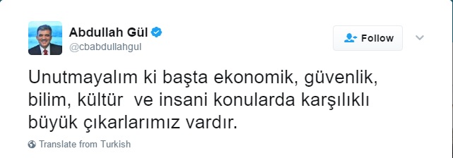 Unutmayalım ki başta ekonomik, güvenlik, bilim, kültür ve insani konularda karşılıklı büyük çıkarlarımız vardır.
