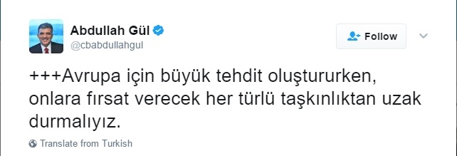 İslam ve Türk düşmanlığını Avrupa’da hiçbir dönemde görülmediği kadar körükleyen yeni popülist partiler ve azgın liderleri, Avrupa için büyük tehdit oluştururken, onlara fırsat verecek her türlü taşkınlıktan uzak durmalıyız.