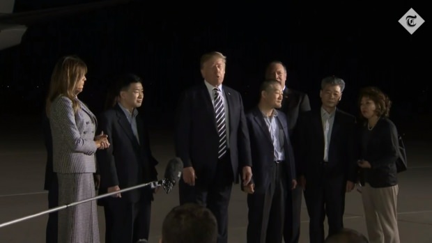 Amerika Birleşik Devletleri Başkanı Donald Trump ve eşi Melania Trump, Kuzey Kore'nin serbest bıraktığı 3 ABD vatandaşını havalimanında karşıladı.