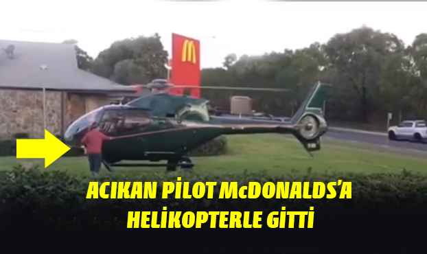 Vatandaşların şaşkın bakışları altında bir helikopter, McDonald'sın hemen yanına iniş yaptı, helikopterin içinden çıkan pilot, siparişini aldıktan sonra tekrar helikoptere bindi ve havalanarak oradan uzaklaştı.