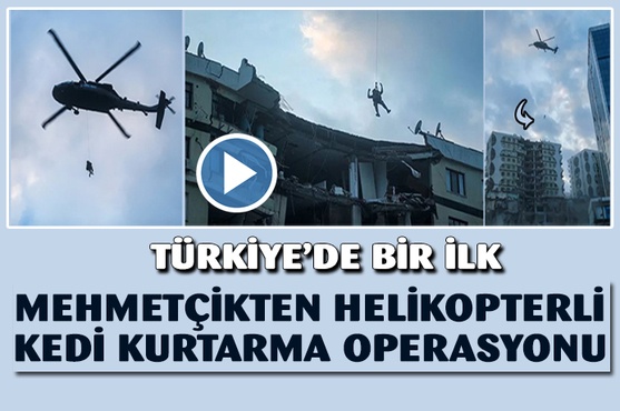 Ağır hasarlı binada mehmetçikten helikopterli kedi kurtarma operasyonu