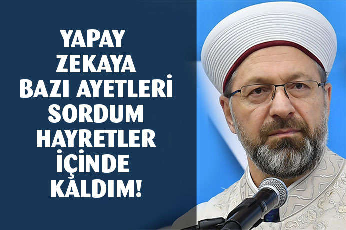 Birkaç gün önce ayeti yapay zekaya yazdığına dikkat çeken Erbaş, "Dedim ki, bunun hikmeti nedir? Nasıl açıklarsınız? Yapay zeka, hayretler içerisinde cevaplar verdi bana. 'Bunun bin 400 sene önce bilinmiş olması imkansız' diyor. Yapay zeka bazı zekaları geride bırakmış durumda. 'Bunun bilinmesi mümkün değil, bilim bunu 1980'li yıllarda ancak bilebildi' diyor. Bunun gibi nice ayetler var." değerlendirmesinde bulundu.